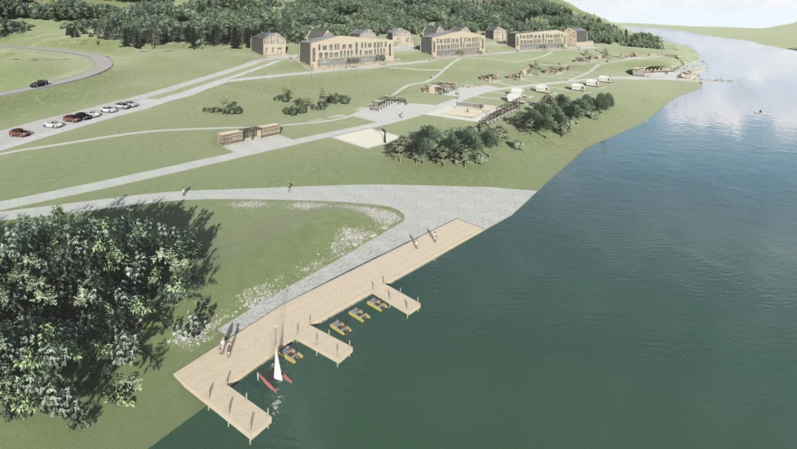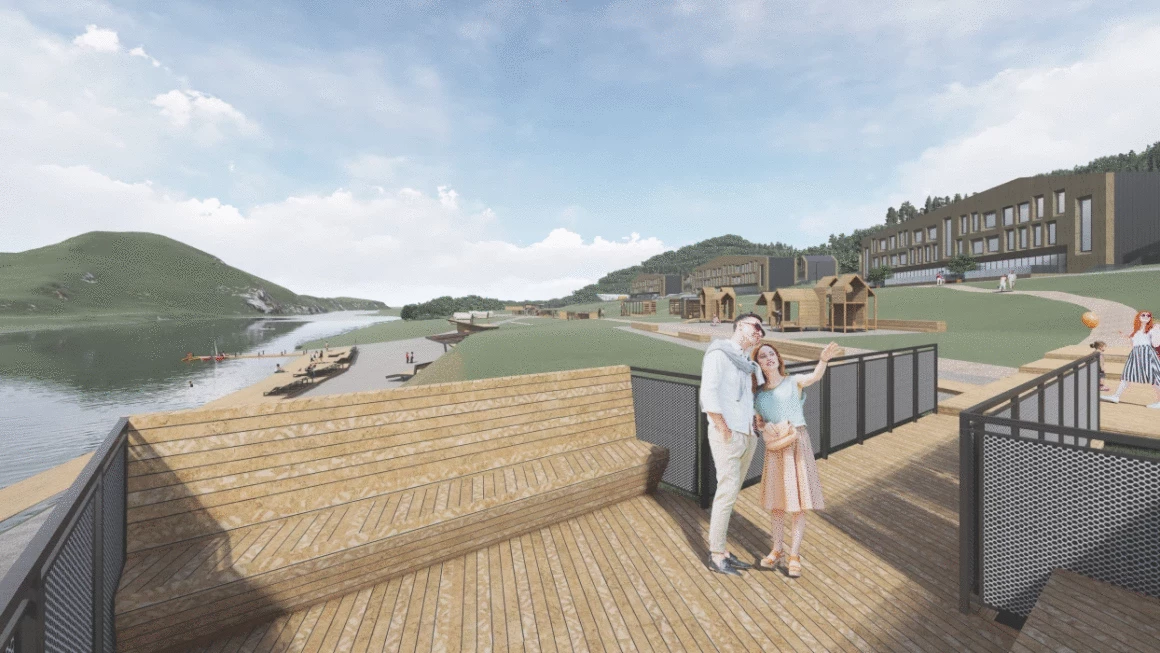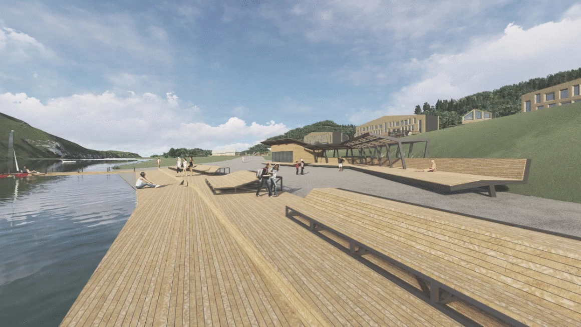 Прибрежная зона отдыха предусматривает различные виды отдыха для всех групп населения. Оформлены детские и спортивные площадки, предусмотрена возможность устраивать пикники. Для любителей экотуризма созданы глэмпинги – разновидность кемпинга, объединяющая в себе комфорт гостиничного номера с возможностью отдыха на природе. Пляжную зону дополняет лодочный пирс для катамаранов туристов, регулярно сплавляющихся по реке. Ближе к пляжу создана смотровая площадка откуда открывается великолепная панорама на реку.