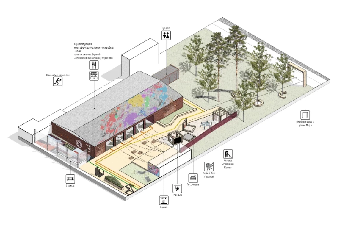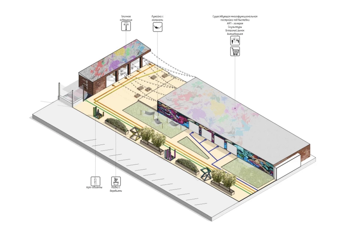 Следующее строение используется для размещения стрит-фуда, рынка эко-продуктов и проведения мероприятий