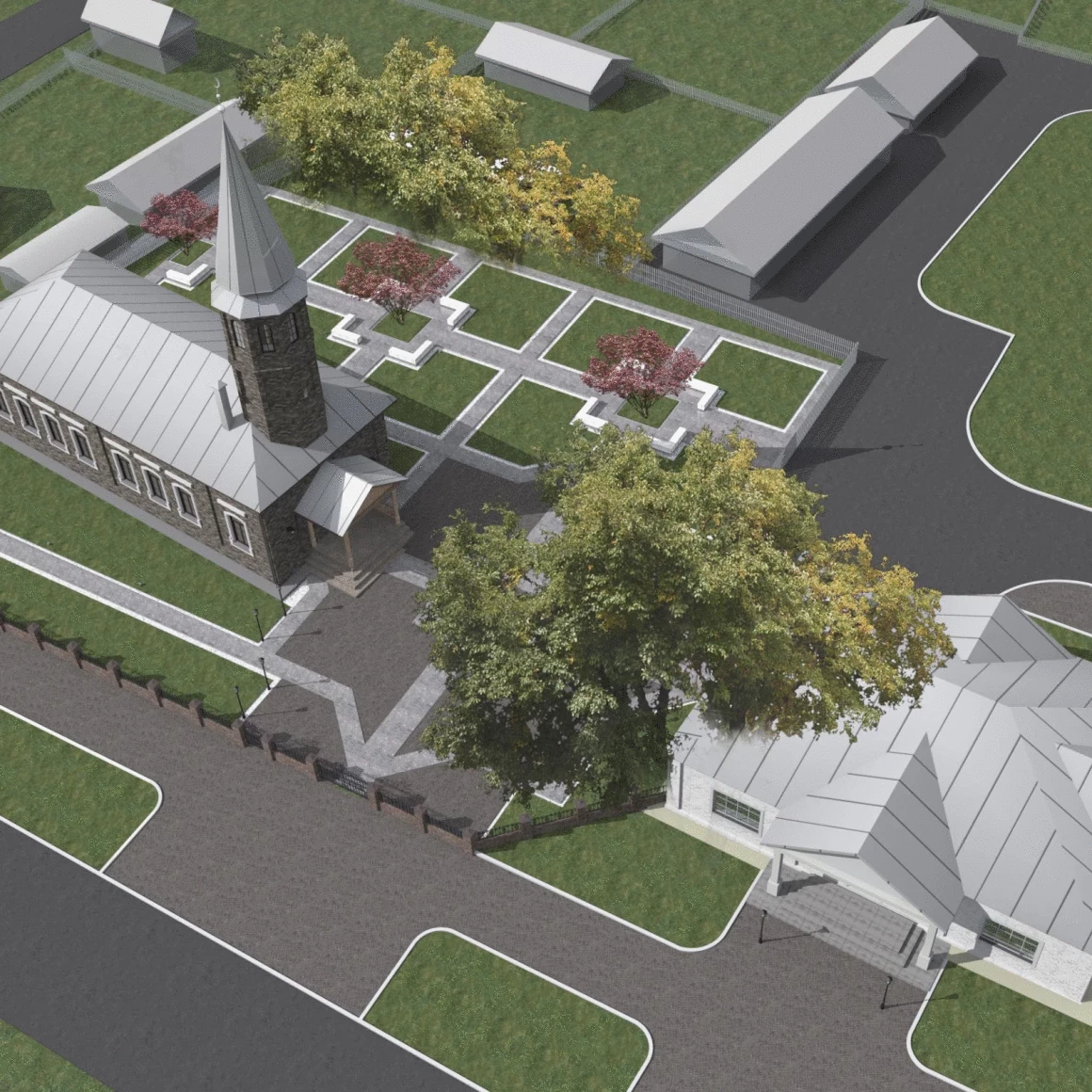 Проект реставрации и приспособления предусматривает комплексное решение благоустройства и планирование прилегающей территории, а именно: