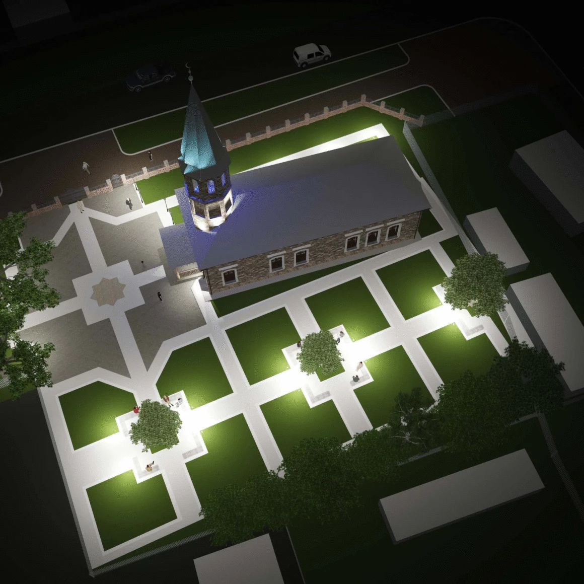 - по периметру мечети организованы пешеходные дорожки