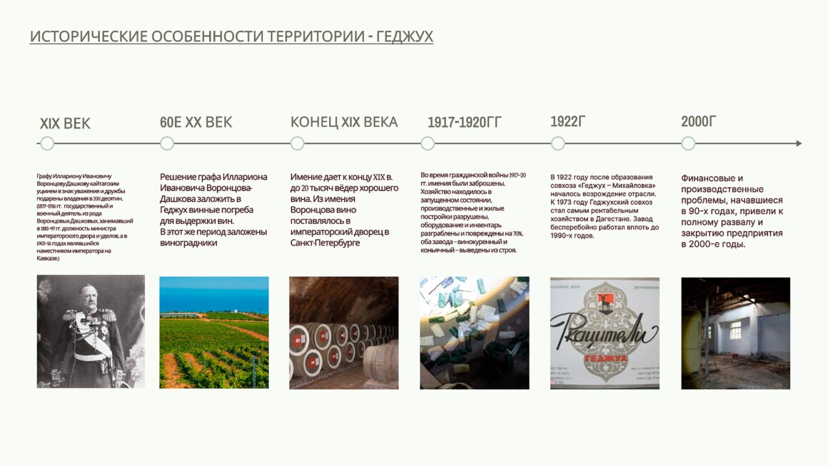 Концепция архитектурного проекта «Архитектура путешествий» для возрождения села Геджух (Дербентский район, Дагестан) как центра энотуризма и культурного хаба на базе исторических Воронцовских подвалов. Проект сочетает сохранение наследия виноделия XIX в., развитие туризма и благоустройство территории для мультипликации эффекта на село. Он ориентирован на растущий турпоток Дагестана (3,9 млн чел. в 2023 г.) и близость к Каспийскому кластеру (700 тыс. туристов к 2030 г.)